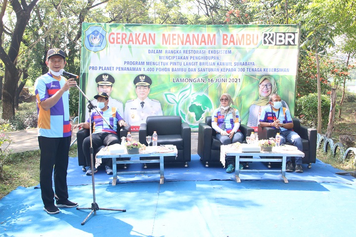 Selaras dengan Bupati YES, Pimpinan Wilayah BRI Surabaya Triswahyu Herlina dalam sambutannya mengungkapkan kegiatan menanam dilakukan mengingat pentingnya untuk memperbaiki kondisi iklim yang semakin tahun semakin naik suhunya. Sehingga dengan menanam kondisi iklim kembali sejuk dan hijau kembali.