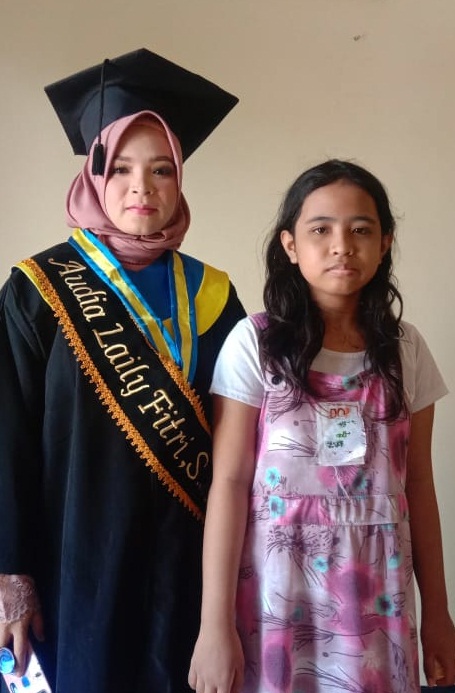 "Dan Alhamdulillah saat diwisuda, si buah hati telah lahir. Itulah yang menjadi terharu karena saya bisa meraih gelar Sarjana S1 dengan berliku-liku,"imbuh wanita yang juga berprofesi sebagai guru honorer tersebut.hik