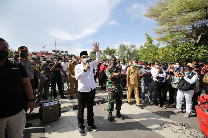 Eri menegaskan, terkait permintaan demonstran yang ingin penyekatan dan swab antigen di Suramadu dihentikan, belum bisa mengabulkannya. “Keputusan ini akan dibicarakan terlebih dahulu dengan Bu Gubernur Jatim. Saya akan menemui dan mendiskusikan ini bersama Forkopimda Jatim. Insyaallah akan saya sampaikan aspirasi njenengan (Anda) ini hari ini juga,” terang Eri.
