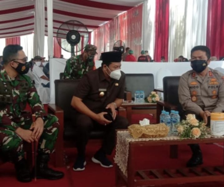 Dandim 0816/Sidoarjo, Letkol Inf M Iswan Nusi, bersama Kapolda Jatim Irjen Nico Afinta, Kapolresta Sidoarjo AKBP Kusuma Wahyu Bintoro, juga Wakil Bupati Sidoarjo Subandi, SH meninjau langsung pelaksanaan serbuan vaksinasi di halaman pakir Timur GOR Sidoarjo, Sabtu (26/06/2021) siang.