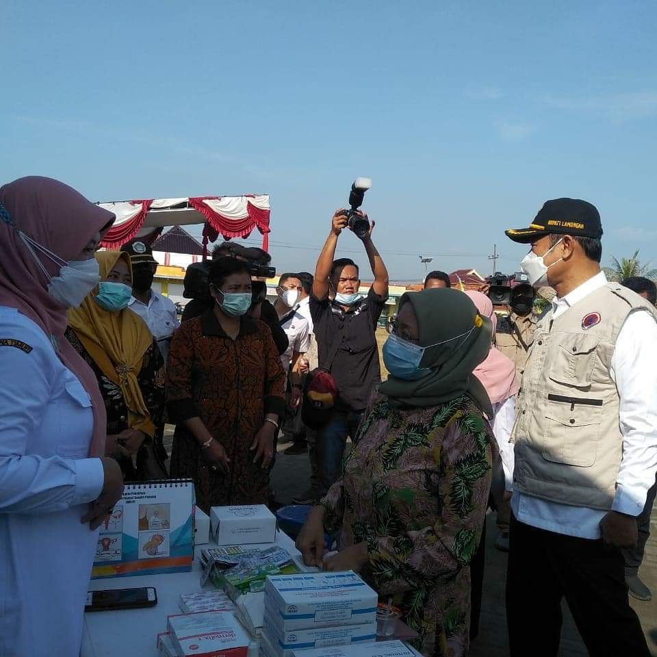Bupati bersama petinggi TNI saat melihat langsung vaksin di Desa Balun Kec Turi Lamongan.SP/ MUHAJIRIN KASRUN