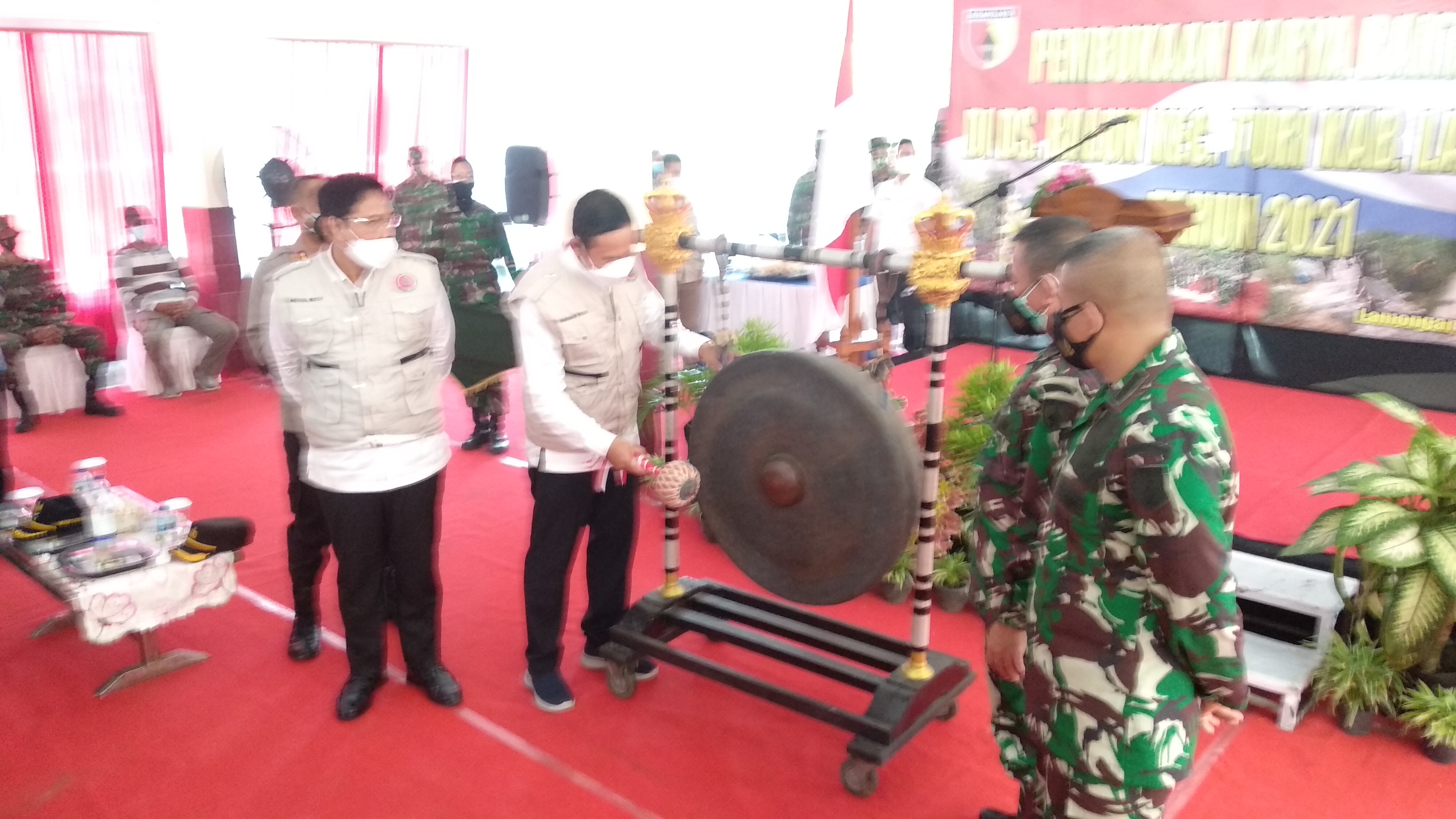 Bupati menabuh gong menandai dimulainya Karya Bhakti TNI.SP/ MUHAJIRIN KASRUN