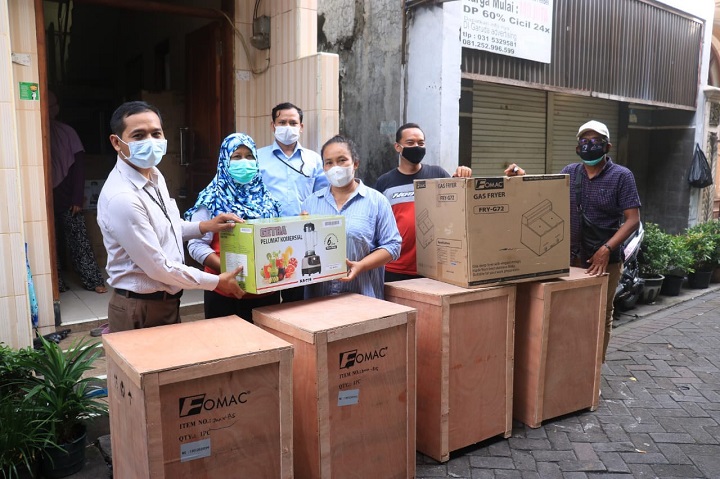 Sementara peralatan yang diberikan antara lain 6 unit mixer duduk, 4 unit oven, 14 unit deep fryer, blender dan baking tray yang diharapkan dapat menunjang kinerja para pelaku UMKM tersebut.