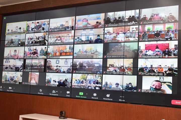 Usai berdialog dengan tokoh agama, kegiatan kemudian dilanjutkan dengan video conference bersama camat untuk memastikan pelaksanaan PPKM Darurat di kecamatan berjalan dengan baik. jir