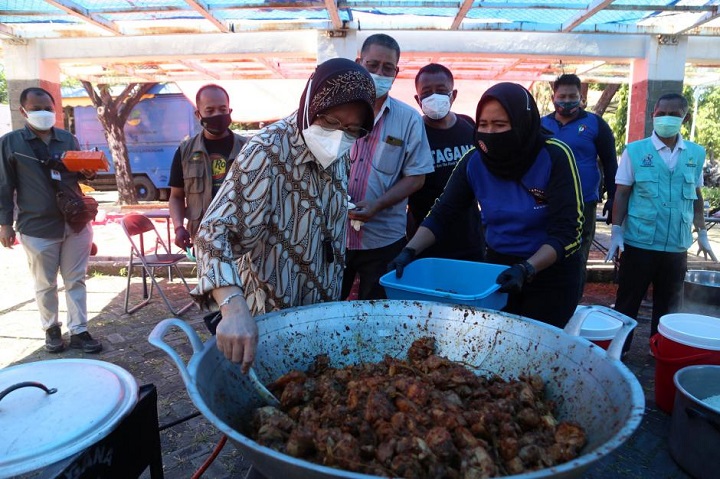 Mulai dari hari Minggu, Risma sibuk menjadi "koki" untuk menyiapkan kebutuhan pangan selama PPKM Darurat berlangsung. Mulai dari memotong bahan makanan, hingga memasak dan membagikan.