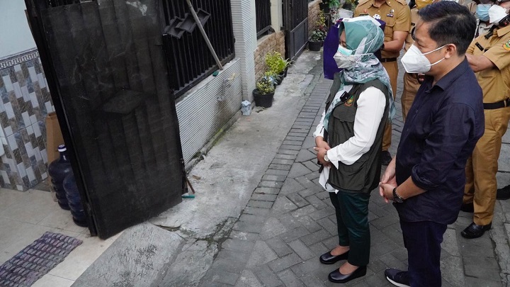 Ia lantas mengunjungi rumah satu keluarga yang dua putra putrinya terpapar Covid-19 di Lingkungan Jalan Kelud, Kelurahan Wates, Kecamatan Magersari, Kota Mojokerto.