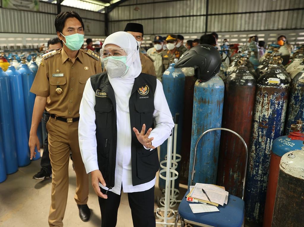 Khofifah memastikan pasokan oksigen untuk pasien Covid-19 di Jawa Timur dalam kondisi cukup dan tidak berkekurangan. Dalam beberapa hari terakhir ini dirinya terus berkeliling Jawa Timur dan mengunjungi sejumlah produsen oksigen untuk memastikan pasokan oksigen aman. By