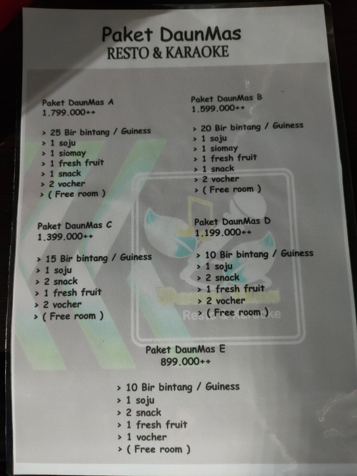 Berdasarkan informasi yang didapat oleh Surabaya Pagi, tempat ini buka hingga pukul 22.00 WIB. Karaoke yang pintunya didominasi oleh warna kuning merah ini masih menyediakan miras hingga purel untuk menemani tamu. Tamu bisa menikmati berbagai fasilitas paketan mulai dari Rp 900 ribu hingga Rp 1.8 juta.