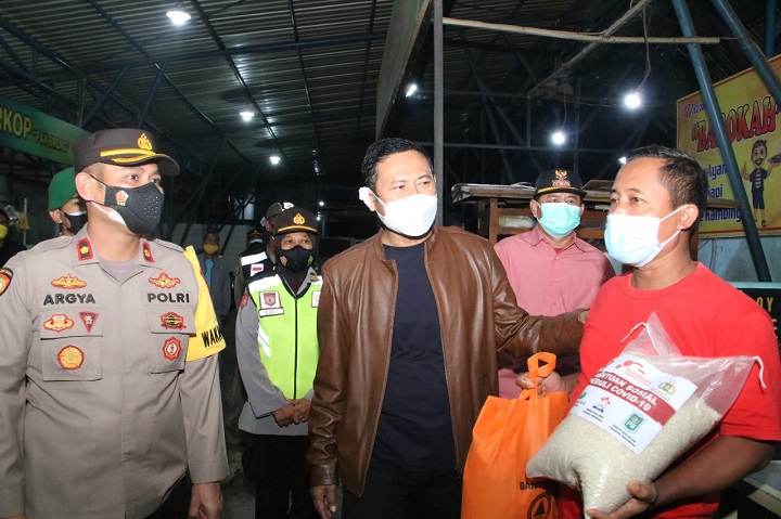 Bupati mengapresiasi itikad para pedagang dalam menerapkan 50% kapasitas pengunjung dan mengutamakan take away (makanan dibungkus). Selain menegakkan disiplin aturan PPKM darurat, bupati memberikan bantuan berupa 100 beras dan 75 paket sembako untuk pedagang di sentra PK5.