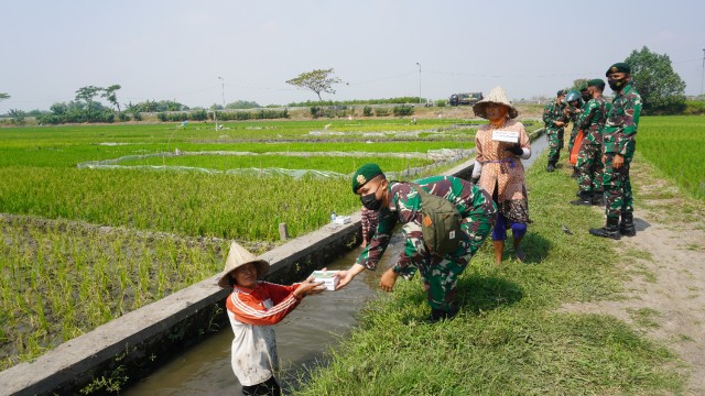 SURABAYAPAGI.COM, Mojokerto - Prajurit TNI Yonif Para Raider 503/Mayangkara memberikan bantuan paket sembako kepada masyarakat kurang mampu yang berada di wilayah Kecamatan Mojosari Kabupaten Mojokerto, Jumat(23/07) pagi.
