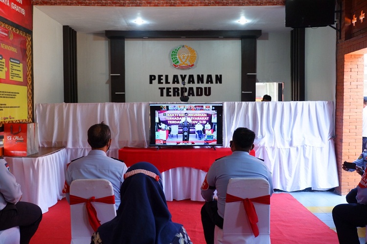 Kalapas Kelas IIB Mojokerto, Dedy Cahyadi dan jajaran saat mengikuti rapat virtual dengan Kemenkumham RI. SP/Dwy AS
