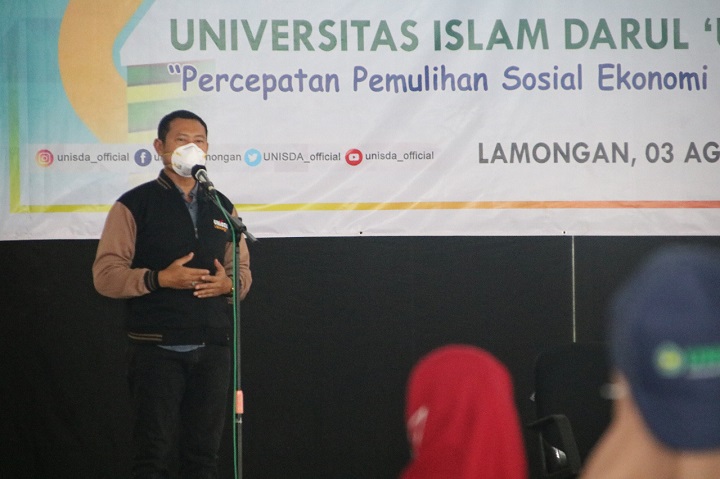 Rektor Unisda Ainul Masruroh yang juga turut hadir pada acara tersebut juga menyampaikan dengan adanya KKN ini bidang akademis ikut mendukung program pemerintah daerah, bersinergi dan berkontribusi dalam mempercepat pemulihan ekonomi sosial masyarakat Lamongan.