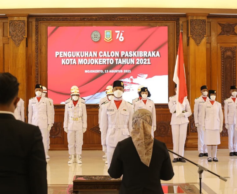 Meskipun ditengah pandemi covid-19, dengan semangat kemerdekaan prosesi pembacaan ikrar dan cium bendera berjalan secara hikmat. Suara lantang serentak dan kompak "SIAP, BERSEDIA" terdengar dari Sabha Mandala Madya balai Kota Mojokerto yang keluar dari para calon anggota paskibraka Kota Mojokerto.