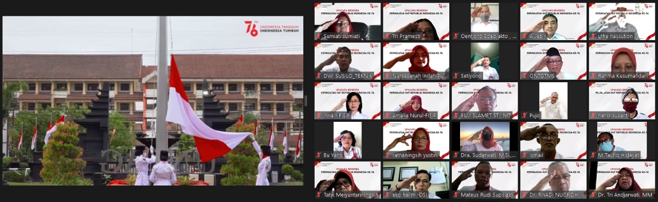 Meski digelar secara virtual, upacara dilengkapi pengibaran bendera merah putih oleh UKM Resimen Mahasiswa melalui pemutaran video. Upacara juga ditandai dengan sikap hormat dan menyanyikan lagu kebangsaan Indonesia Raya oleh seluruh peserta.