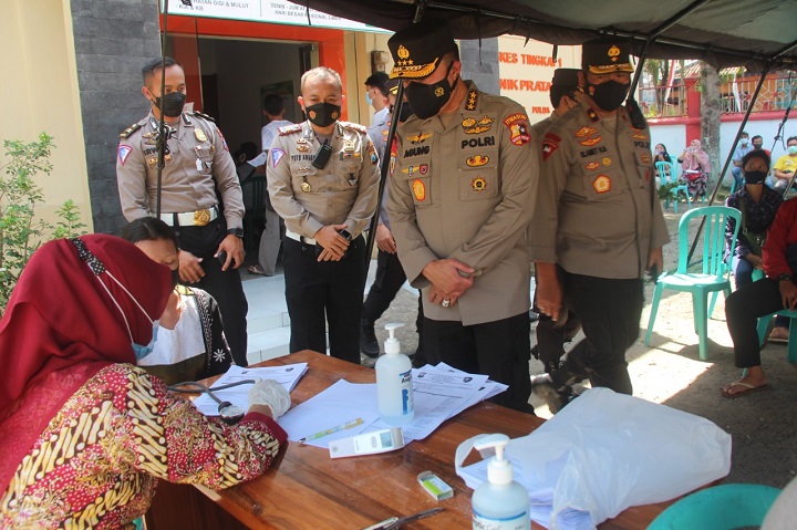 Kunjungan Komjen Pol Agung Budi Maryoto yang didampingi Kapolres Blitar AKBP Aditya Panji Anom S.IK bersama Kapolres Blitar Kota AKBP Dr.Yudhi Hery Setyawan S.IK M.Si dan Komandan Kodim 0808 Blitar Letkol.Inf.Didin Nasrudin Darsono.M.Han. langsung menuju ke Poliklinik Pratama Polres Blitar untuk menyaksikan masyarakat yang menjalani vaksinasi.