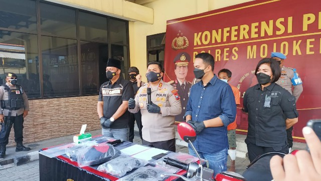 "Calon ibu mertua korban ini mendapati dua handphone itu di tempat kos pelaku, Desa Wonorejo, Kecamatan Trowulan, Kabupaten Mojokerto dalam keadaan rusak karena dibongkar pelaku," kata Kapolres saat konferensi pers di Markas Komando Polres Mojokerto, Sabtu (28/8/2021).