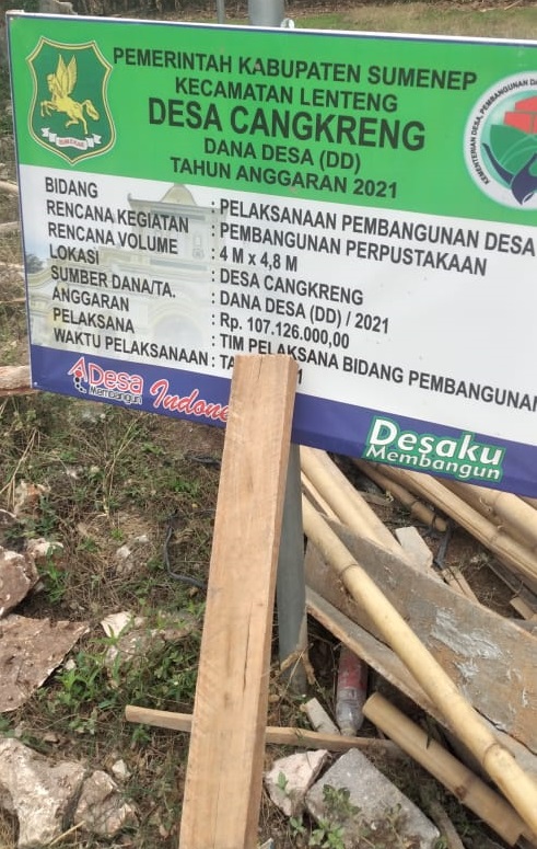 SURABAYAPAGI.COM, Sumenep - Desas desus dugaan Mark up anggaran pembangunan Gedung perpustakaan di Desa Cangkreng kecamatan Lenteng ramai diperbincangkan.