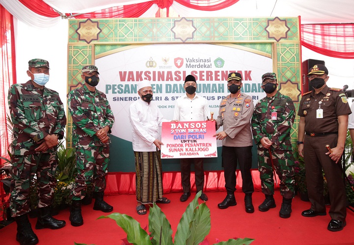 Selain Wali Kota Eri, vaksinasi di Ponpes Sunan Kalijogo juga dihadiri langsung Kapolrestabes Surabaya Kombes Pol Akhmad Yusep Gunawan, Danlanud Muljono Kolonel Pnb Moh. Apon, dan Kepala Kejaksaan Negeri (Kajari) Surabaya Anton Delianto.