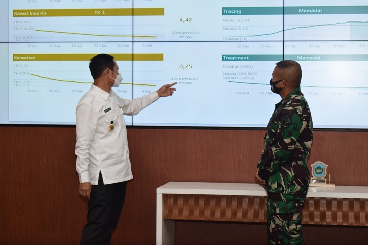“Alhamdulillah, ini cukup kita sambut dengan senang, dengan gembira. Tapi saya sampaikan kepada seluruh elemen pemerintah dan masyarakat bahwa level 1 ini harus terus kita sikapi dengan baik, tidak boleh euforia. Kegiatan dan aktifitas sehari-hari di masyarakat dilakukan secara bertahap, bertingkat, dan berkelanjutan,” terangnya.