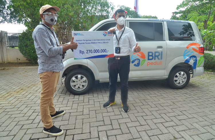 SurabayaPagi, Surabaya - BRI Peduli menyerahkan bantuan 1 unit ambulans kepada Yayasan Pesona Mutiara Timur Sidoarjo, Senin (13/9/2021).