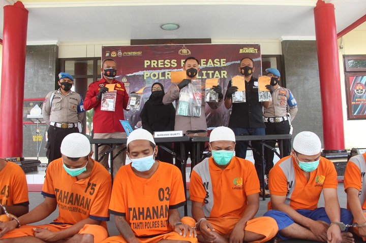Ke enam tersangka tersebut yakni, DS (33) warga Kecamatan Gandusari, HRW (29) dan RJ (28) warga Kecamatan Nglegok, dan AS (30) warga Kecamatan Srengat, serta DH (30) dan NF (35) keduanya warga Kecamatan Talun, yang kesemuanya merupakan warga Kab Blitar.
