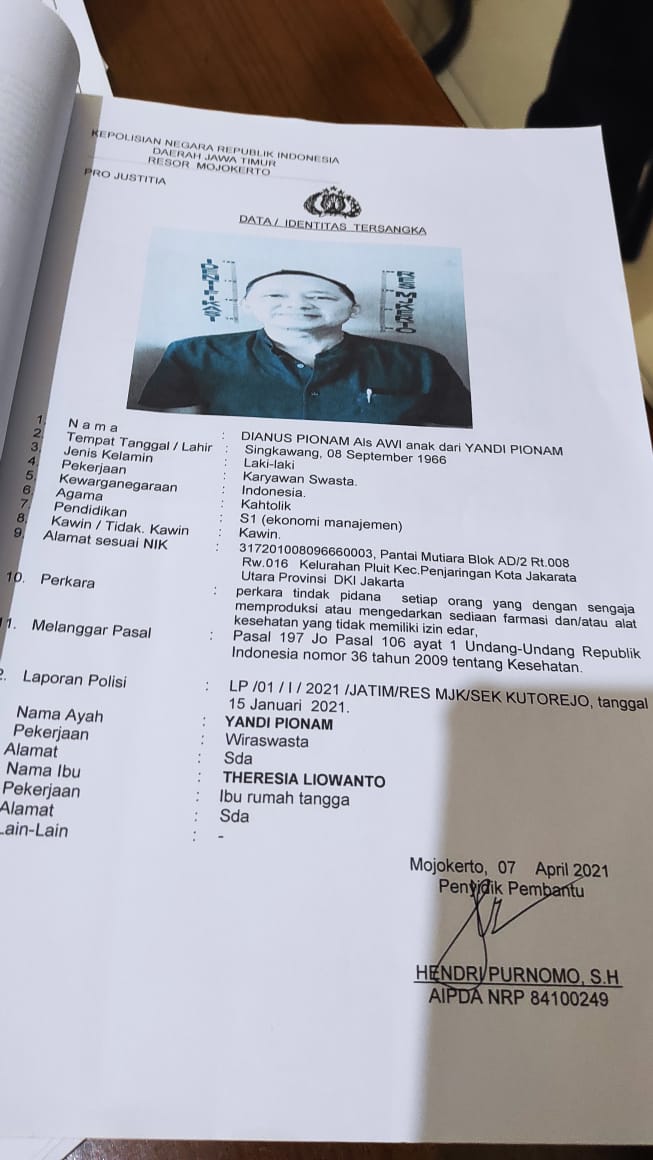 Seperti diketahui, Dianus Pionam merupakan bandar besar importir obat aborsi yang diamankan Polres Mojokerto pada Maret 2021 bersama 7 orang yang telah mendapat vonis lebih duhulu dari Pengadilan Negeri Kabupaten Mojokerto. Salah satu jenis obat tersebut adalah cytotec, obat yang digunakan untuk melakukan aborsi.