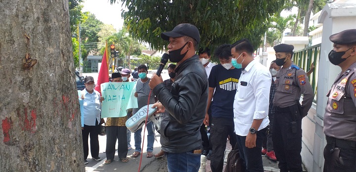 Selain Triyanto, dari FMR, Fachrul Iga Taufik (32), juga menyampaikan orasinya agar tuntutan aspirasinya untuk mengusut tuntas kasus korupsi KONI Kota Blitar ini.