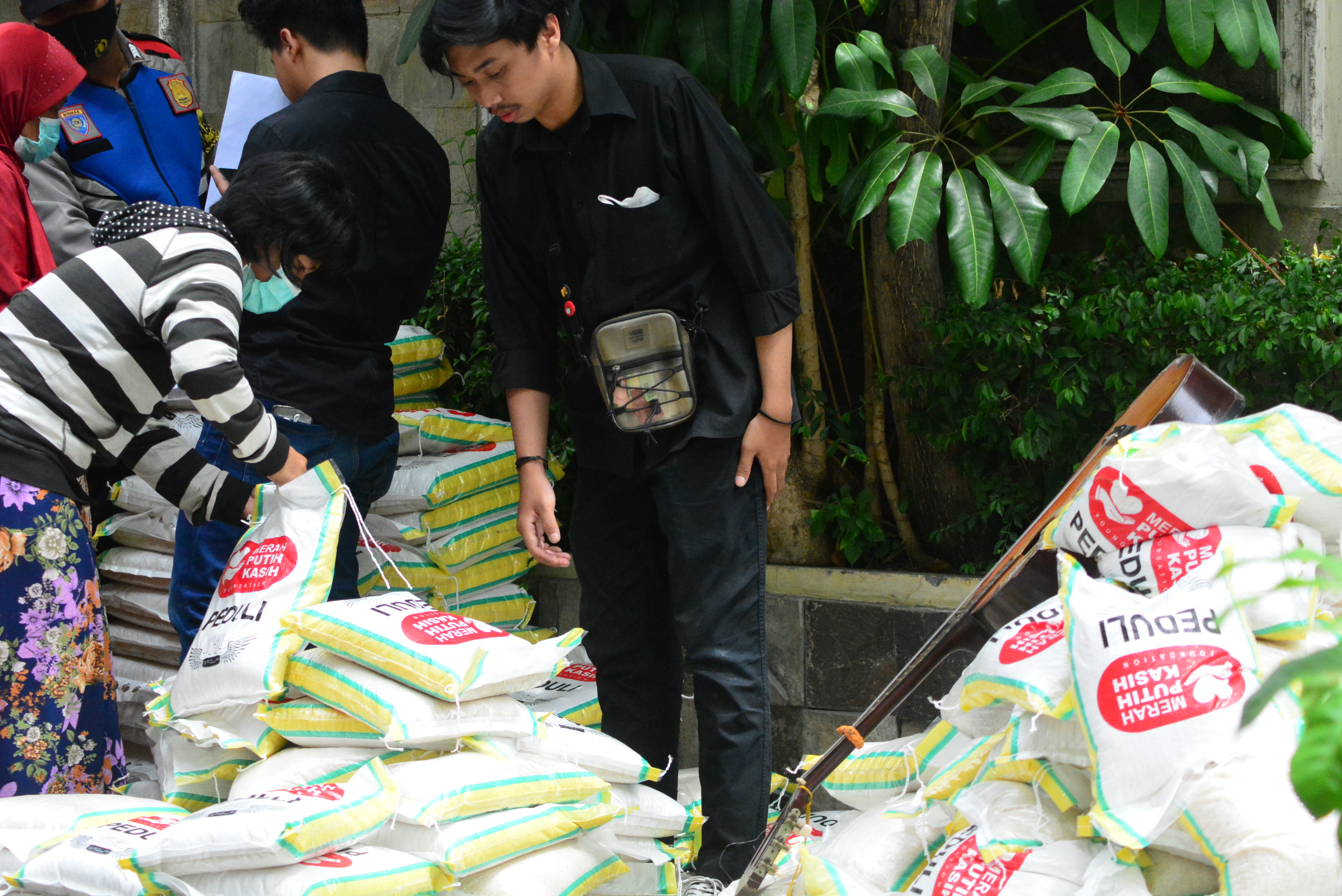 Proses pembagian bansos berupa beras sebanyak 5kg dari BEM Nusantara dengan kuota sekitar 1000.sp/ge