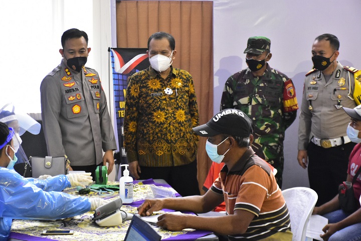 SURABAYAPAGI.COM, Blitar - Kepedulian Polres Blitar terhadap warga masyarakat yang terdampak pagebluk covid-19 dengan memberi bantuan terus dilakukan, tidak ketinggalan dalam HUT Satuan Polisi Lalu Lintas, Kamis (23/9) memberi bantuan bingkisan kepada warga masyarakat yang menyandang status tunawisma dan vaksinasi sebanyak 81 tunawisma di gedung Hugeng Iman Santoso Polres Blitar dipimpin langsung Kapolres Blitar AKBP Aditya Panji Anom S.IK.