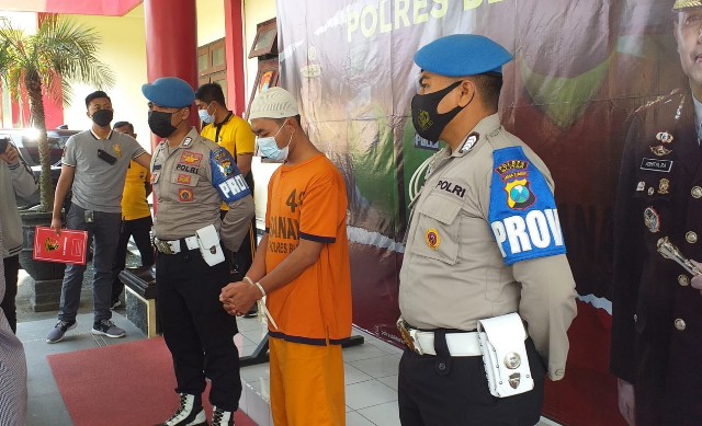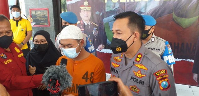 "Setelah peristiwa pelaku melarikan diri dengan kendarai motor, setelah kami melakukan pengejaran terhadap pelaku mendapatkan informasi pelaku sembunyi di kawasan hutan Wilayah Ngantang Kab.Malang, saat dilakukan penangkapan pelaku tanpa perlawanan, karena kelaparan setelah melarikan diri, untuk motornya waktu itu di parkir di halaman kantor KUD Kec.Ngantang, kini tersangka kami tahan untuk mempertanggung jawabkan perbuatanya.." kata AKBP Aditya didampingi Kasat Reskrim dan Kasi Humas Iptu Udiyono.