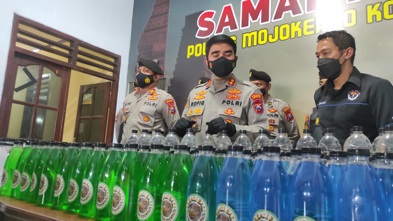 Total keseluruhan barang bukti yang diamankan dari Kota Mojokerto dan Kabupaten Mojokerto sebanyak 387 botol. Yakni, 142 botol arak bali Arkali Flame Brush 600 ml, 115 botol Arkali Natural 600 ml, 29 botol Arkali Natural 1,5 liter, 44 botol Arkali Blueberry 600 ml, dan 57 botol Arkali Pandan 600 ml.