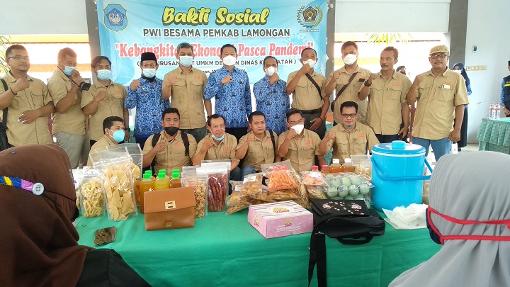 SURABAYAPAGI.COM, Lamongan - Upaya Pemkab Lamongan membangkitkan ekonomi pelaku Usaha Mikro Kecil Menengah (UMKM) pasca pandemi covid-19, terus mendapatkan dorongan semua pihak. Kali ini dari kalangan wartawan yang tergabung dalam Persatuan Wartawan Indonesia (PWI) Lamongan.