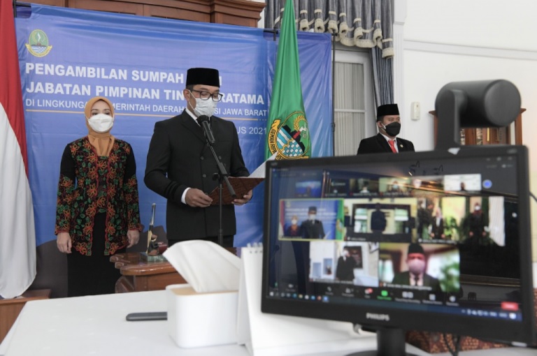SURABAYAPAGI.COM, Bandung – Gubernur Jawa Barat Ridwan Kamil mengambil sumpah jabatan tiga pimpinan tinggi pratama di lingkungan Pemda Provinsi Jabar.