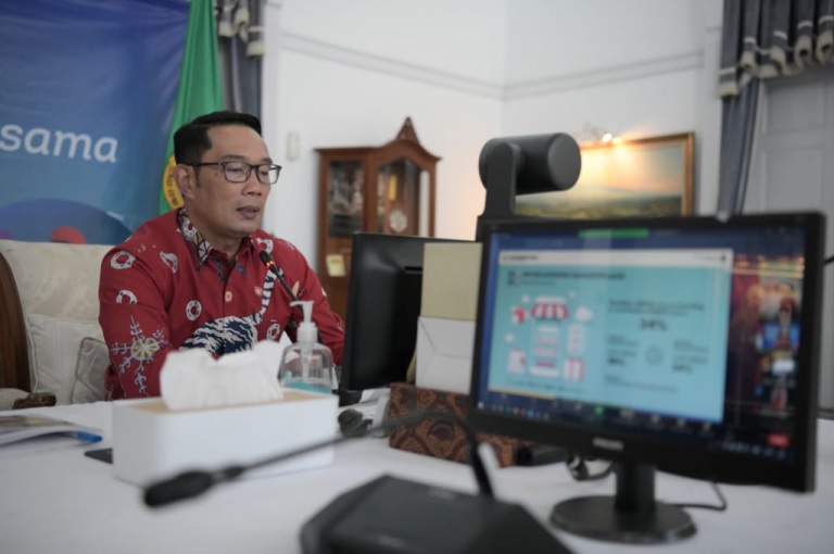Selama pandemi ini Pemda Prov Jabar bersama kab/kota mendampingi dan melatih UMKM untuk tetap bertahan bahkan berkembang dengan beradaptasi dengan teknologi yakni melakukan strategi pemasaran digital.