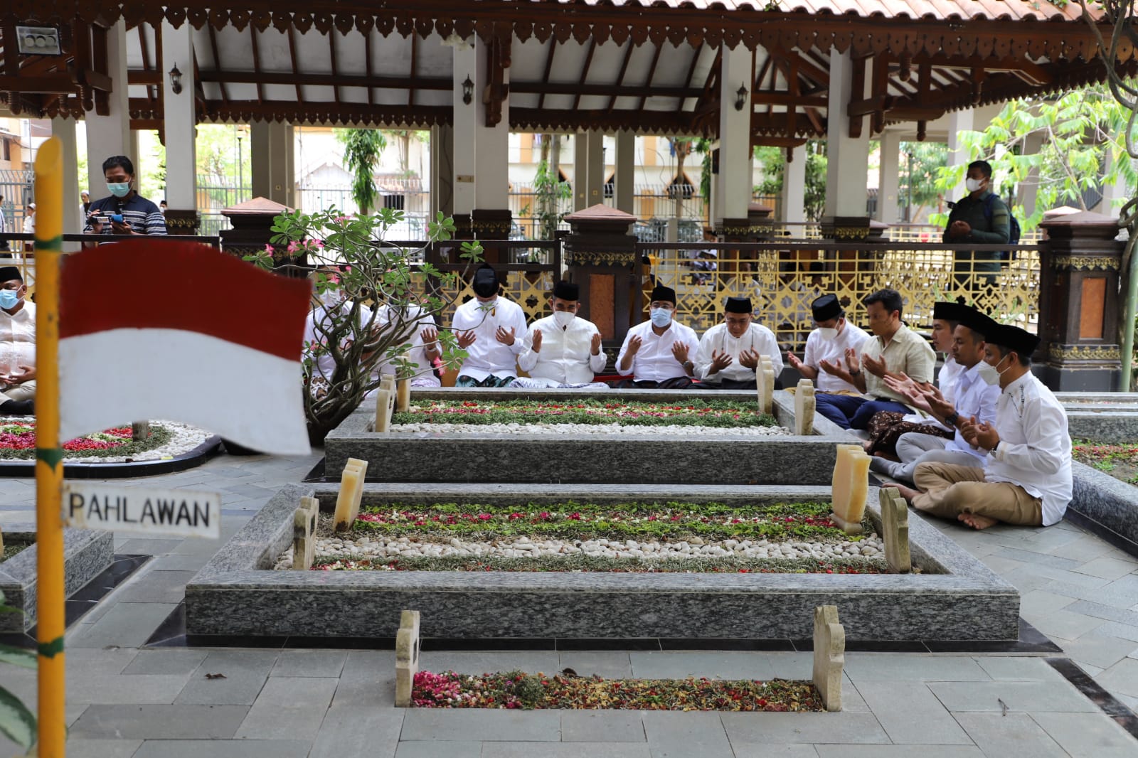 Dari pantauan, usai membacakan doa di samping pusara, kader gerindra secara bergantian menabur bunga di komplek pemakaman keluarga besar Ponpes Tebuireng.