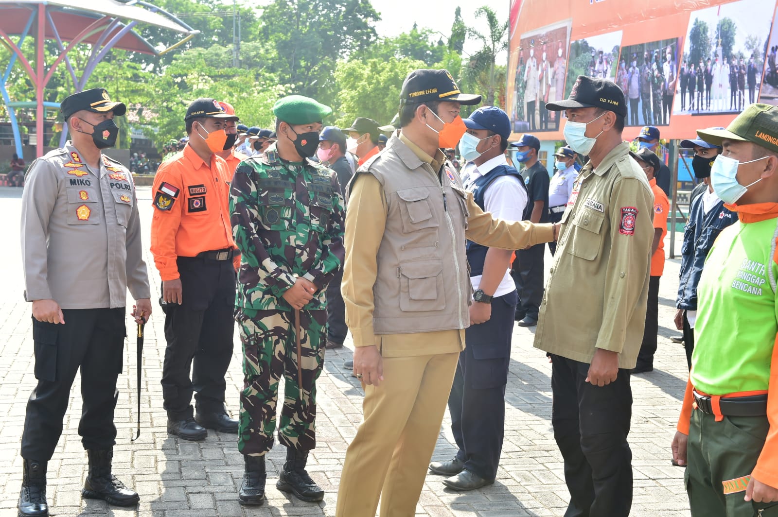 SURABAYA PAGI, Lamongan - Akhir tahun di Lamongan biasanya terjadi bencana banjir. Untuk mengantisipasi dan mempersiapkan berbagai jenis bencana hidrometeorologi itu, Pemkab Lamongan bersama TNI Polri menggelar apel gelar pasukan dan peralatan di Alun-alun Kabupaten Lamongan, Senin (25/10/2021).