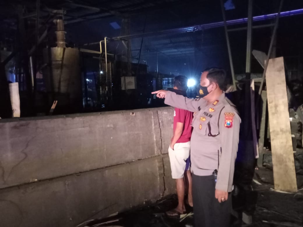 " Sesuai dengan keterangan saksi saksi setelah mesin Boiler tidak aktif di dalam mesin terdapat sisa sisa oli yang masih panas karena tidak ada sirkulasi udara, selanjutnya operator mengurangi api dalam tungku pembakaran, sehingga tumpahan oli yang panas tumpah pada abu yng juga panas sehingga timbul kebakaran," kata AKP Imam Subechi di TKP.