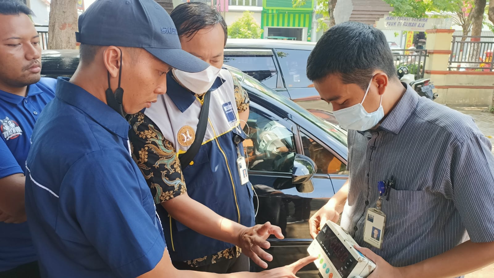 SURABAYA PAGI.COM, Mojokerto - Dinas Koperasi, Usaha Kecil Menengah, Perindustrian Perdagangan (Diskopukmperindag) Kota Mojokerto, gelar sidang tera ulang timbangan milik pedagang emas dan jasa ekspedisi Kota Mojokerto di halaman Kantor Kecamatan Prajurit Kulon, Kota Mojokerto, Kamis (28/10/2021) pagi.