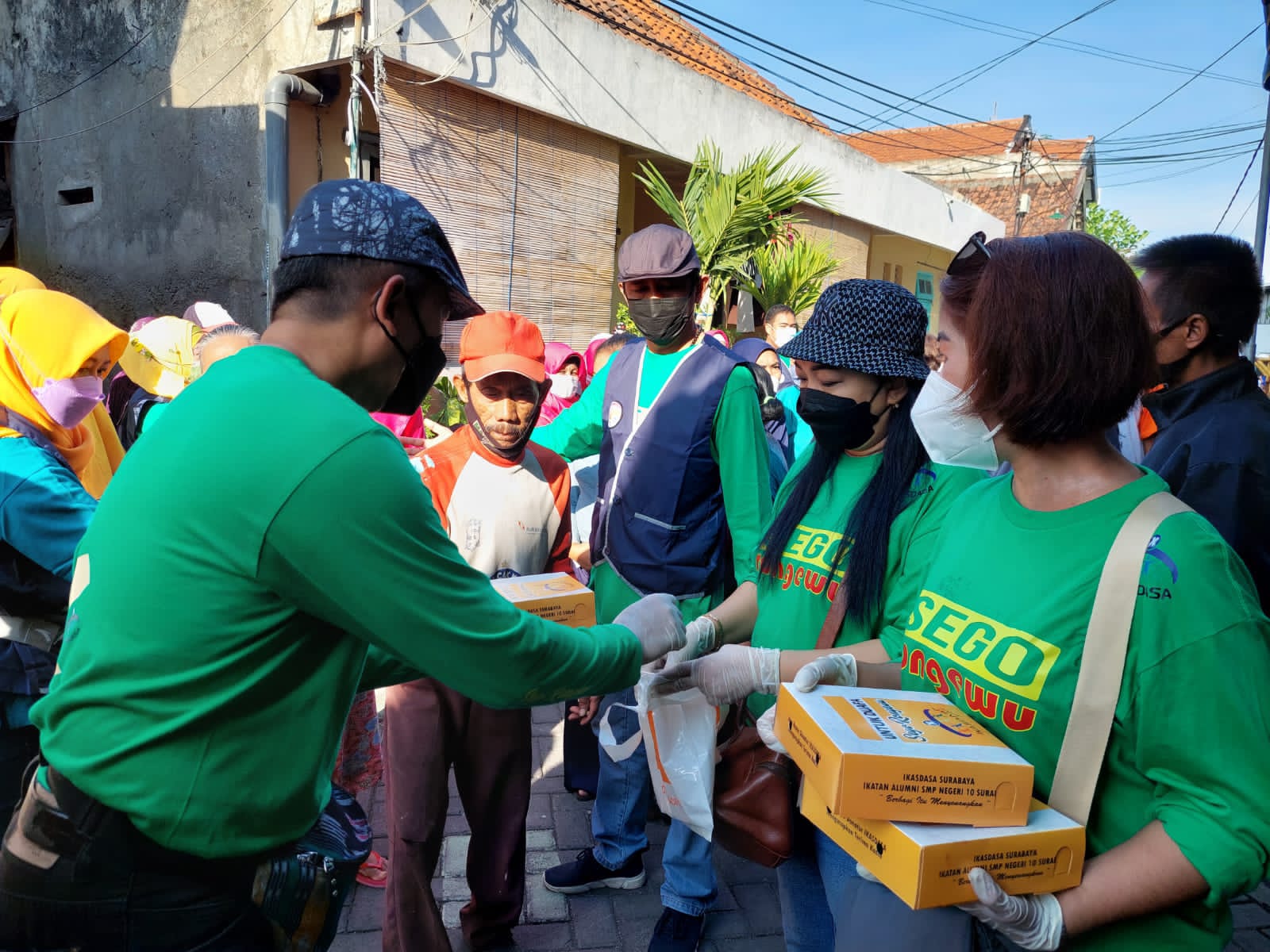 SurabayaPagi, Surabaya - Program Sego Rongewu yang digagas Ikasdasa (Ikatan Alumni SMPN 10) Surabaya, untuk yang perdana kembali digelar di RW III, Kelurahan Kupang Krajan, Kecamatan Sawahan, Kota Surabaya, setelah vakum sekitar 1,5 tahun karena pandemi Covid 19.
