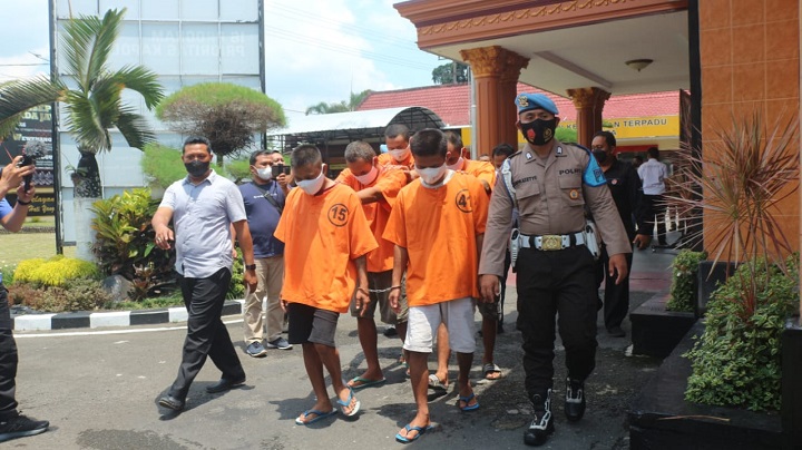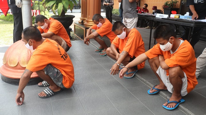 "Kelima tersangka ini tidak saling mengenal hanya dua orang yang kerja sama, dan kelima tersangka ini anèhnya mengedarkan dengan cara sistem ranjau, dan kelima tersangka ini ditangkap beda waktu dan beda tempat, tapi modusnya sama," jelas AKBP Yudhi dalam releasenya.