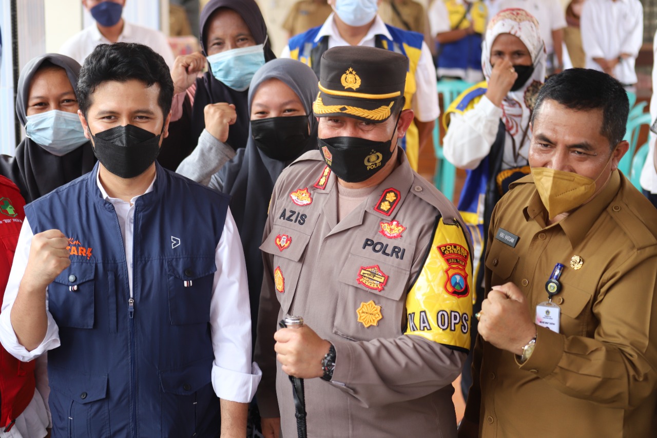 Emil didampingi Kapolres Gresik, AKBP Mochamad Nur Azis,SH,SIK,MSi dan Muspika Kecamatan Kedamean bersama Kepala Desa Cermen, Suhadi. Tampak hadir Asisten III Pemkab Gresik Abu Hassan dan Kepala BPBD Gresik, Tarso Sagito.