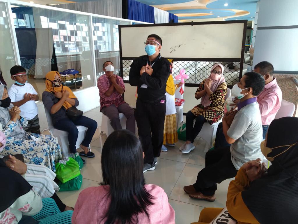 Sementara, untuk orang tua pendamping mendapat bimbingan debriefing, dan terapi kelompok, untuk membagikan pengalaman dan harapan untuk saling penguatan. Sedangkan untuk penyandang disabilitas mendapat bimbingan menggambar dan mewarnai.