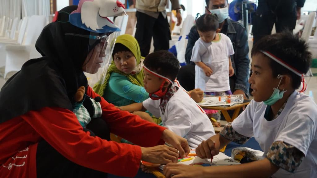 Selain mendapat dukungan psikososial anak-anak yatim piatu terdampak covid-19 dan penyandang disabilitas ini juga mendapat penguatan atau sugesti positif, dan mendapat sembako dari CSR, serta sarkon dari BRI pusat, paket belajar atau alat tulis, paket kesehatan dan snack.