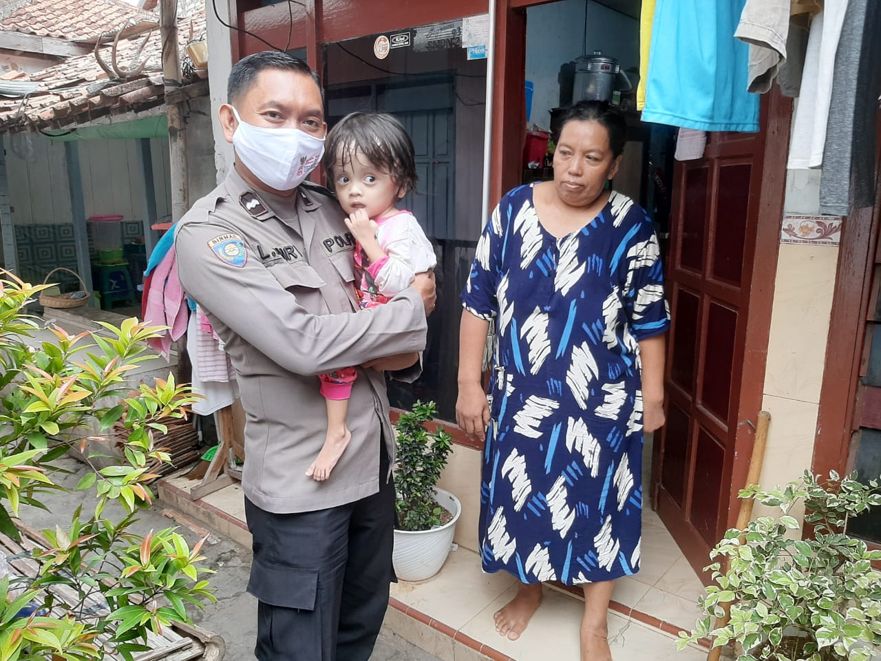 Dengan membawa paket sembako, Aipda Liwail Amri SH dan Brigadir Moh. Fakhrudin mendatangi Emilia yang menderita penumpukan cairan di rongga otak (Hidrosefalus) sejak lahir.