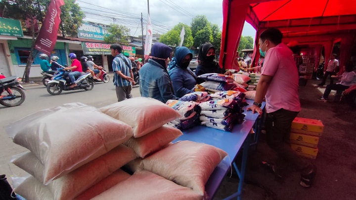 Harga yang ditawarkan adalah beras medium 5kg seharga Rp 41.500. Beras premium 5 kg seharga Rp 50.000. Beras fortivit Rp 12.000 per kilo. Tepung terigu Rp 8.000 per kilo. Paket minyak goreng 1 liter dan gula pasir seharga Rp 27.000.