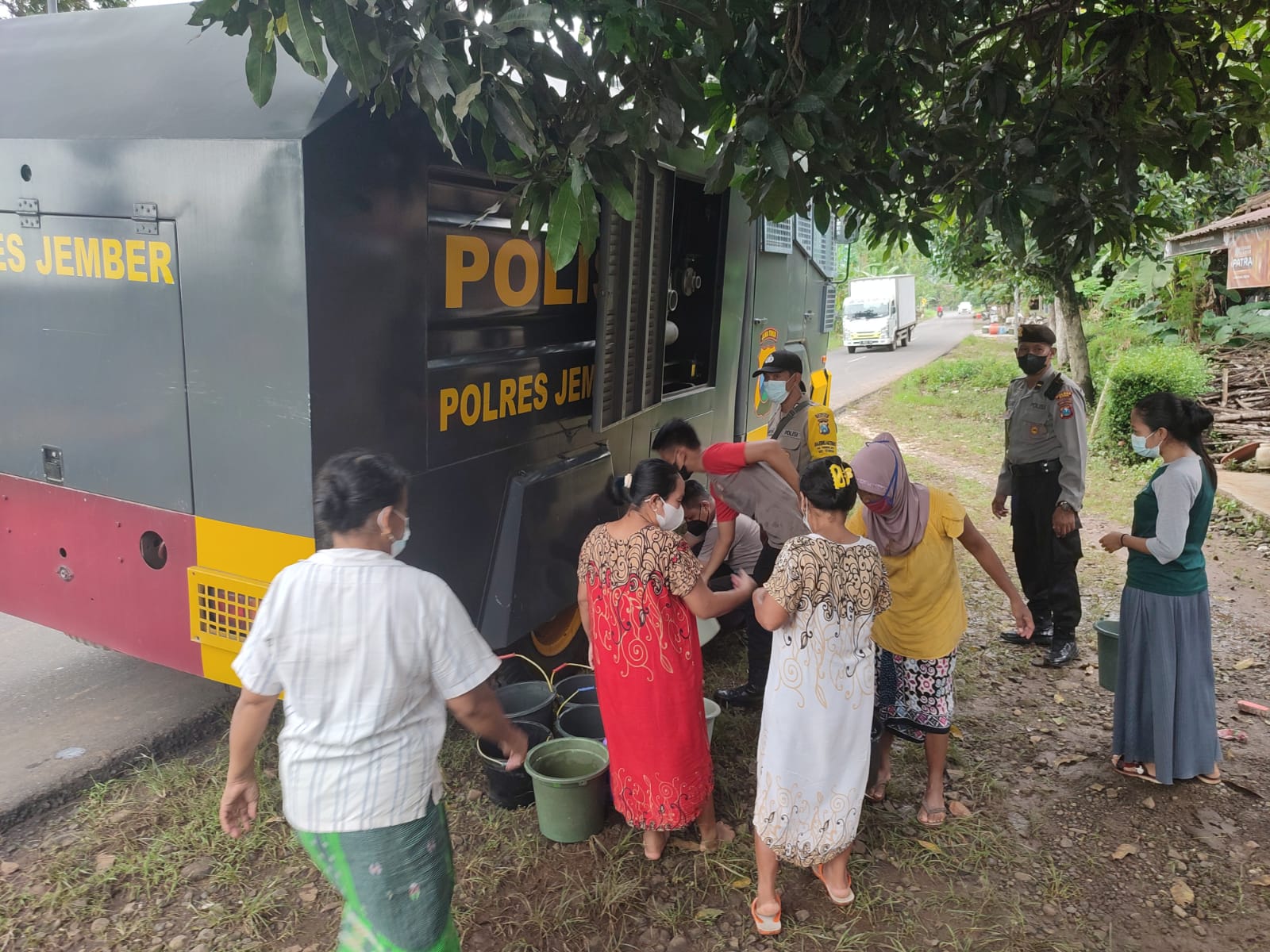 Banyak sumur penduduk yang tak lagi dapat menyediakan air bersih untuk kebutuhan sehari-hari. Dalam situasi krisis air bersih ini, Polres Jember mengerahkan water canon untuk mengurangi masalah.