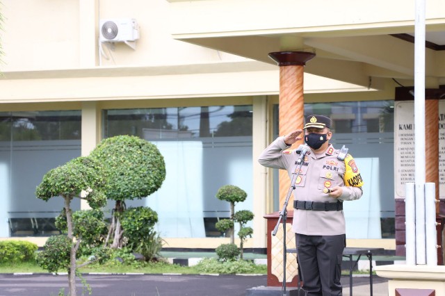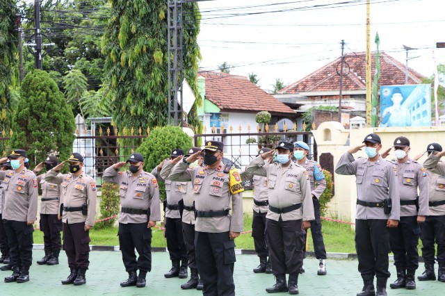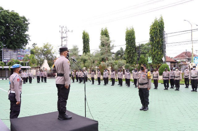 Apel serpas digelar di halaman Mapolresta Banyuwangi, Selasa (16/11/2021). Turut hadir dalam apel Serpas, Wakapolresta AKBP Didik Harianto serta para pejabat utama Polresta Banyuwangi.