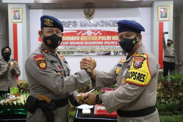Puluhan anggota yang tergabung dalam anggota Brimob nusantara yang Berdinas di Polres Mojokerto ini hari ini Kamis (18/11) melaksanakan Tasyakuran HUT Brimob ke 76 yang dihadiri oleh Kapolres Mojokerto AKBP Apip Ginanjar di Aula Polres Mojokerto.