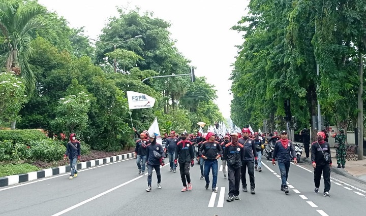 Kendati ada kenaikan, tidak membuat para pekerja atau buruh yang tergabung FSPMI Jatim menerima keputusan tersebut.