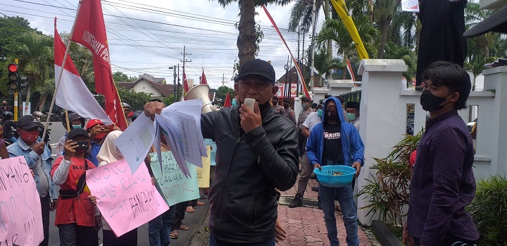 "Pak Jaksa kali ini kami minta penjelasan arah penyelidikan kasus dugaan Korupsi Koni Kota Blitar, setelah beberapa waktu lalu kita serahkan bukti bukti fisik dan rincian dugaan Korupsi setelah pihak kejaksaan melakukan.penyelidikan, untuk itu kami berharap tanggal 9 Desember mendatang mohon sudah ada penetapan para tersangka Korupsi, yang bertepatan tanggal 9 Desember merupakan Hari Anti Korupsi." Teriak Triyanto yang di sambut yel yel peserta Unras tangkap dan adili para tersangka Korupsi.